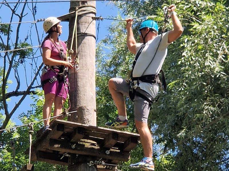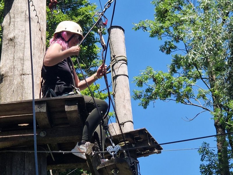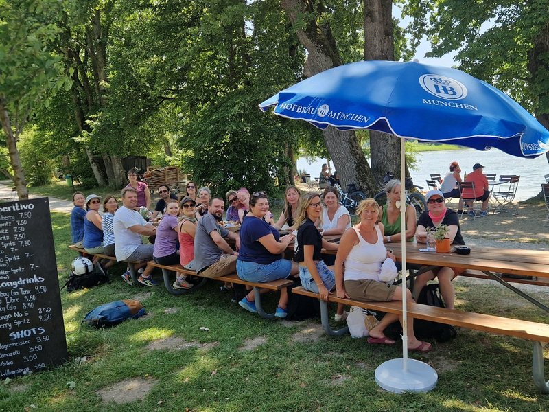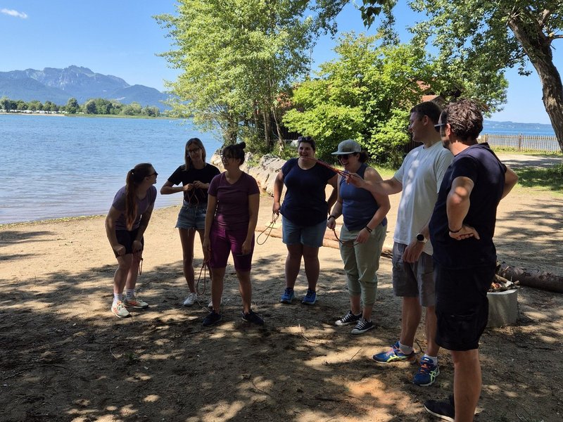 Frau Müller konnte mit Parker Outdoor in Übersee am Chiemsee einen sehr passenden und sympathischen Anbieter für eine Teamentwicklungsaktion mit Hochseilgarten und Bogenschießenkurs für unser Betreuungsteam organisieren. Alle Teilnehmer/-innen hatten mächtig Spass. Es war eine gute Kombination aus Action, Entspannung, Zeit für Gespräche und Vernetzung, Kooperation, Kommunikation und Genuss. Manche/-r Kollege bzw. Kollegin kam an die eigene Grenze und musste die Komfortzone verlassen. So wachsen wir an Herausforderungen und durch das Überwinden von Ängsten. Die Höhe und die erforderliche Geschicklichkeit und Kraft waren wirklich eine Herausforderung. Zum Abschluss gab es am wunderschönen Chiemsee eine deftige Brotzeit am Strandcafe. Alle Teilnehmenden waren sich einige: ein rundum gelungener Ausflug.