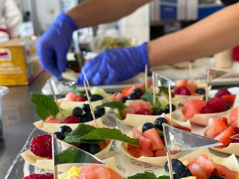 Bewohnende und Mitarbeitende hatten die Tische im Speisesaal liebevoll vorbereitet. Bei Fingerfood und Getränken kamen die Gäste schnell miteinander ins Gespräch. Nach einer Begrüßung und einem kurzen Rückblick auf die Entwicklung von Schloss Tannegg wurde das Konzept der Besonderen Wohnform der Sozialen Teilhabe vorgestellt und ein Ausblick in die Zukunft gegeben.