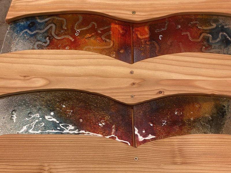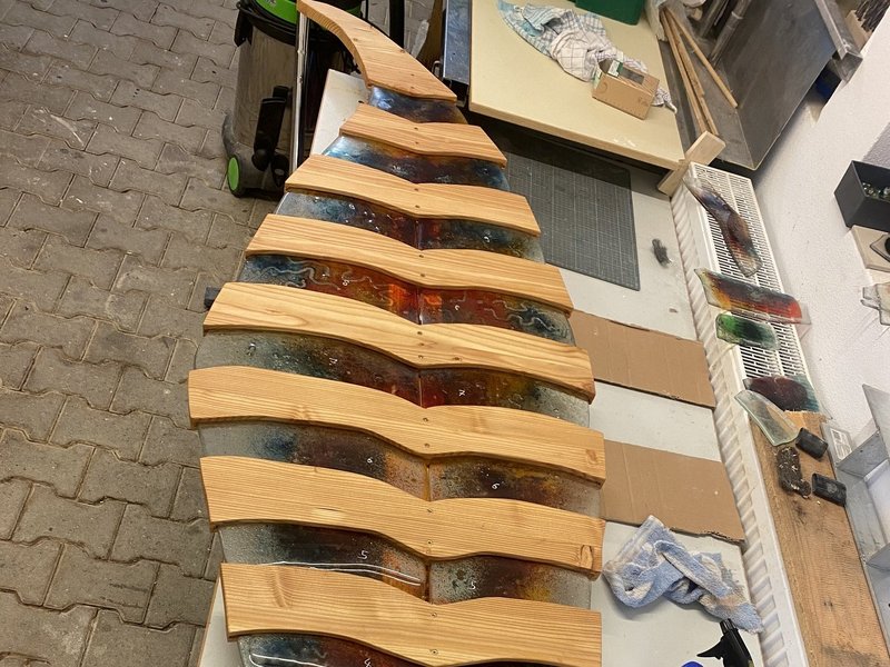 Mit seinem AT-Team hat er noch eine beeindruckende Glas-Holz-Stehle zum Abschluss gebracht und uns diese Fotos - vom Endprodukt - zukommen lassen.