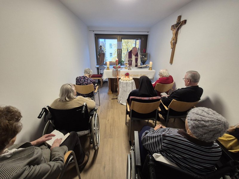 Am Sonntag versammelten sich Bewohnerinnen und Bewohner, sowie Mitarbeiter/-innen in unserer Hauskapelle, um gemeinsam den Gedenktag Allerseelen zu begehen. In einer tief bewegenden Feier gedachten wir all jener lieben Menschen, die im vergangenen Jahr von uns gegangen sind und die uns in liebevoller Erinnerung bleiben. Der Gottesdienst, zelebriert von Pater Walter Orth, stand ganz im Zeichen des Trostes und der christlichen Hoffnung. Pater Walter fand einfühlsame Worte, die uns Mut machten und die uns in unserem Schmerz und unserer Trauer begleiteten.