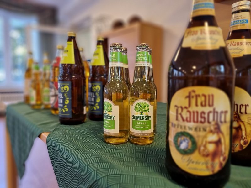 In unserer Apfel- und Kartoffelwoche wurden am Mittwochabend alle Bewohnerinnen und Bewohner zu unserem Apfelweinfest eingeladen. Hier gab es verschiedene Apfelweine bei stimmungsvoller Musik zum Probieren . Nach der Probe gab es einen kleinen Imbiss, den uns die Küche zubereitete. Alle Anwesenden freuten sich über Käsespieße, Frikadellen, Schnitzel und Kartoffel-Apfelsalat. Das kleine Fest hatte allen sehr viel Freude bereitet, sodass sie am nächsten Morgen beim Frühstück noch davon schwärmten.
