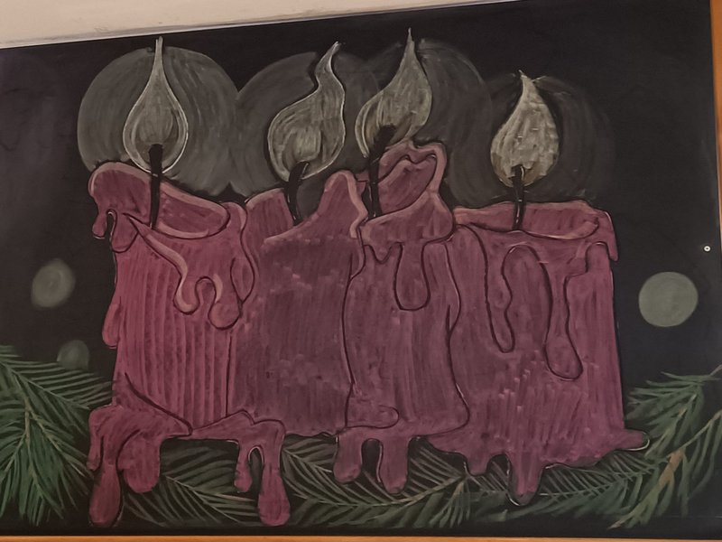 Am Sonntag wurde die vierte Kerze an unserem Wandbild im Speisesaal "entzündet".