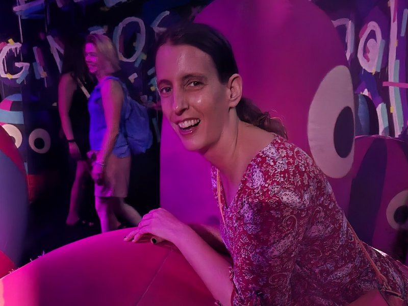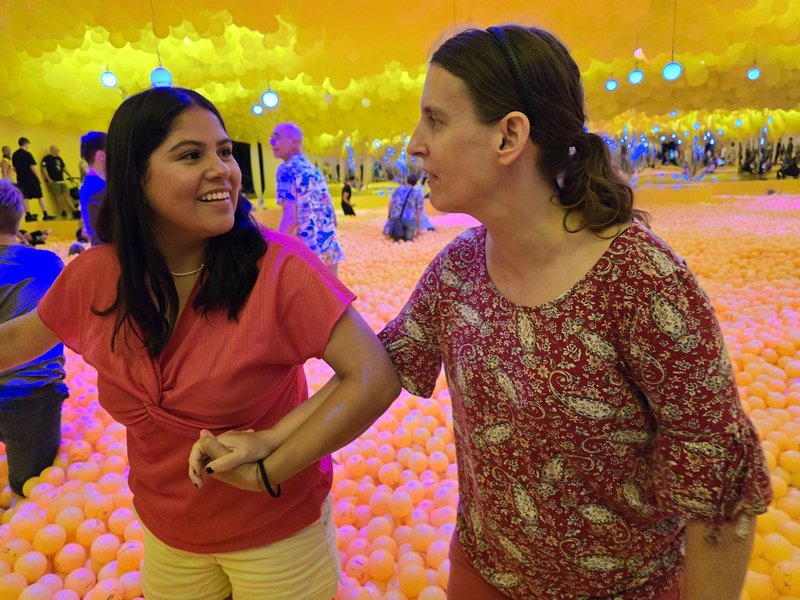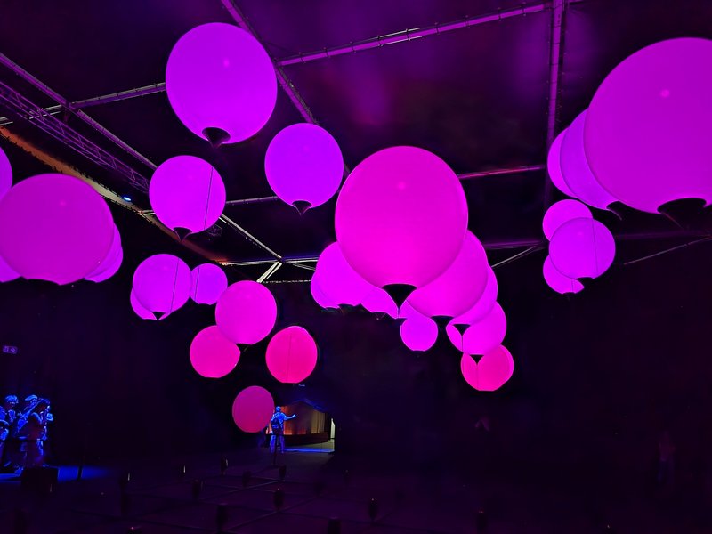 Die Snacks sind eingepackt und die Reise mit dem Auto kann voller Vorfreude starten. Schon das ist ein kleines Abenteuer für einige, die länger nicht gefahren sind. Am Ziel erwartet die Gruppe der Blick auf ein riesiges Gebäude mit bunten Ballonkonstruktionen. Und dann geht’s los: Ein Kunstwerk nach dem anderen, und das Beste – alles zum Anfassen und Mitmachen! Es ist genügend Zeit, alles zu erkunden und auszuprobieren oder anzufasssen. Eine Installation bewegt sich sogar zur Musik, hypnotisch und faszinierend, die Begeisterung ist groß.