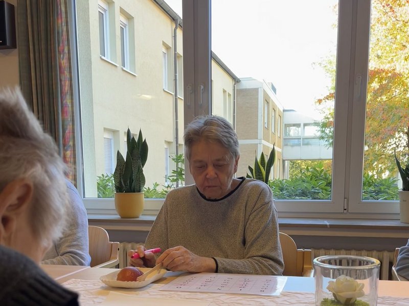 Und weiter geht es in der Apfel- und Kartoffelwoche. Am Vormittag wurden die Bewohnerinnen und Bewohner besucht, die das Bett leider nicht mehr verlassen können. Ihnen wurde von Anika Epp und dem Bewohner Paul Leusing eine Geschichte vorgelesen sowie im Anschluss ein Bild überreicht.