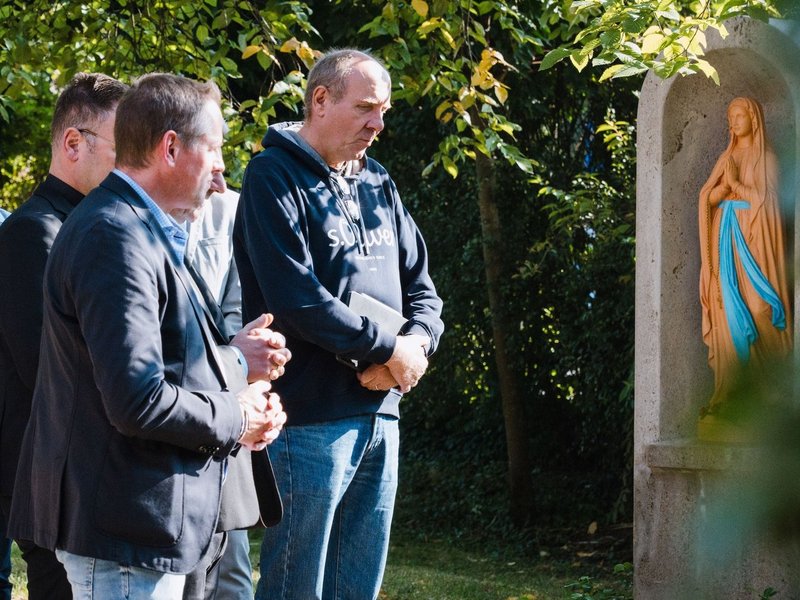 Im Anschluss daran führte sein Weg in die Kapelle des Hauses und weiter zum neugestalteten Mariengarten, einem Gedenkort für unsere verstorbenen Bewohnerinnen und Bewohner. Danach besuchte er die Möwengruppe, bei der er mit einem Bewohner sowie den Mitarbeitenden der ins Gespräch kam.