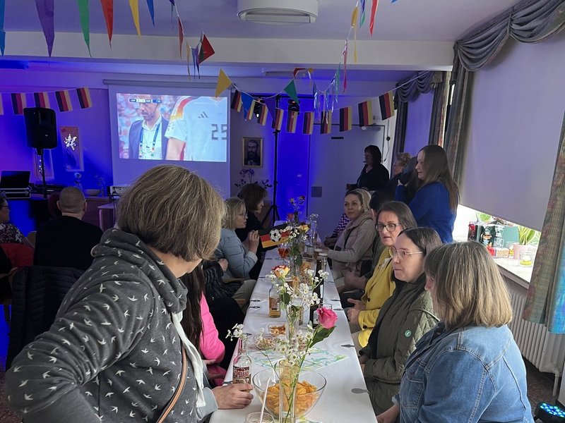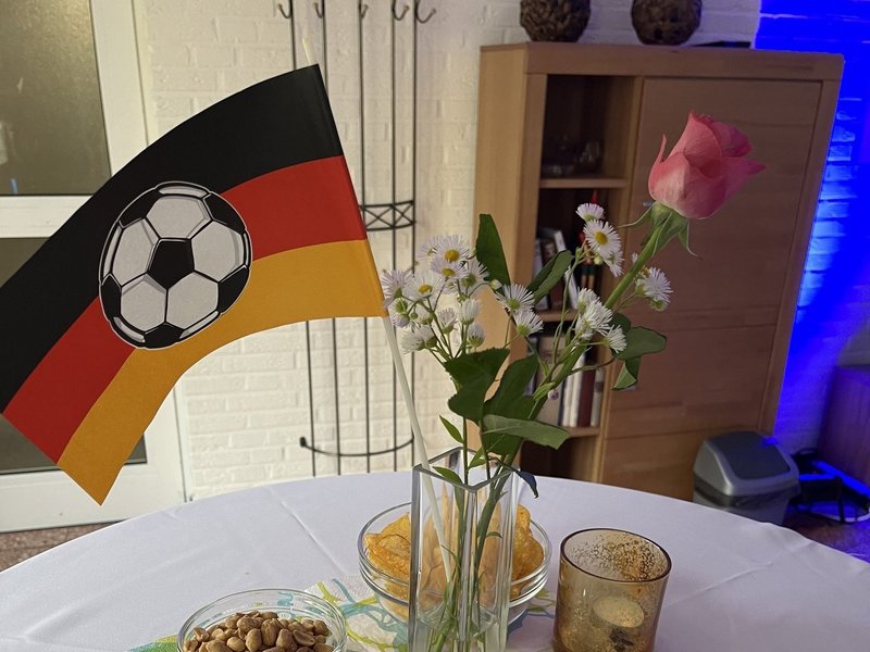 Der Fernsehsaal wurde kurzerhand zu einem EM-Studio umgebaut, sodass vor allem die Fußballfans nicht zu kurz kamen. Der DJ sorgte für die musikalische Unterstützung während des Spiels und auch danach.