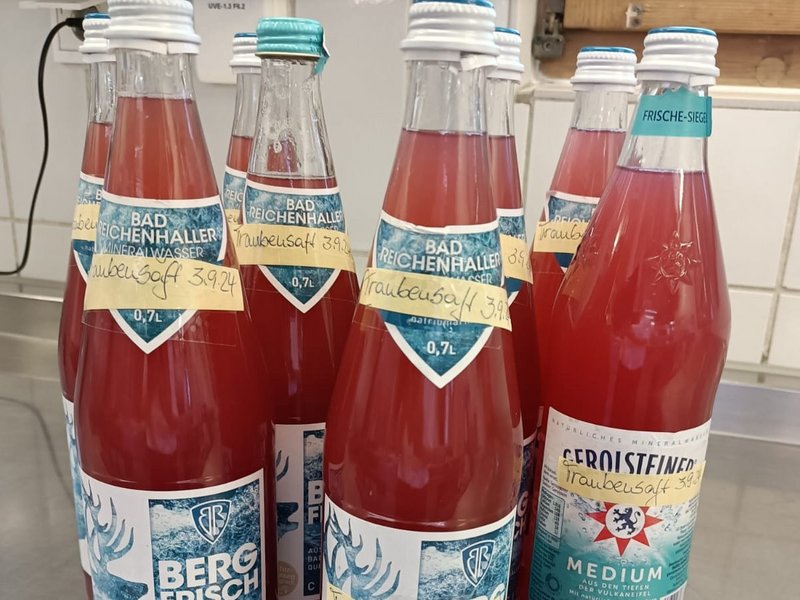 Unsere Küchen-Crew hat hochwertigen und leckeren Traubensaft und Zitronenmelissensirup mit Produkten aus unserem Garten hergestellt.