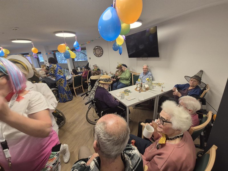 Helau und Alaaf! Am vergangenen Donnerstag herrschte im Altenheim Maria vom Karmel Ausnahmezustand – im allerbesten Sinne. Unsere Bewohnerinnen, Bewohner und das Team feierten gemeinsam ein Faschingsfest, das so schnell niemand vergessen wird. Schon beim Betreten des festlich geschmückten Saals war klar: Hier regiert die gute Laune. Überall hingen bunte Luftschlangen, farbenfrohe Clownsgesichter und glitzernde Girlanden, die den grauen Alltag für ein paar Stunden komplett vertrieben.