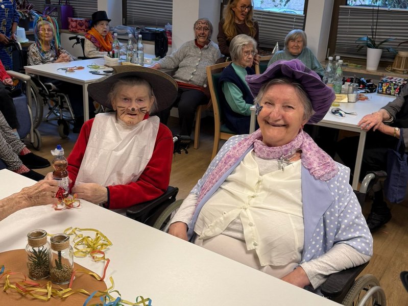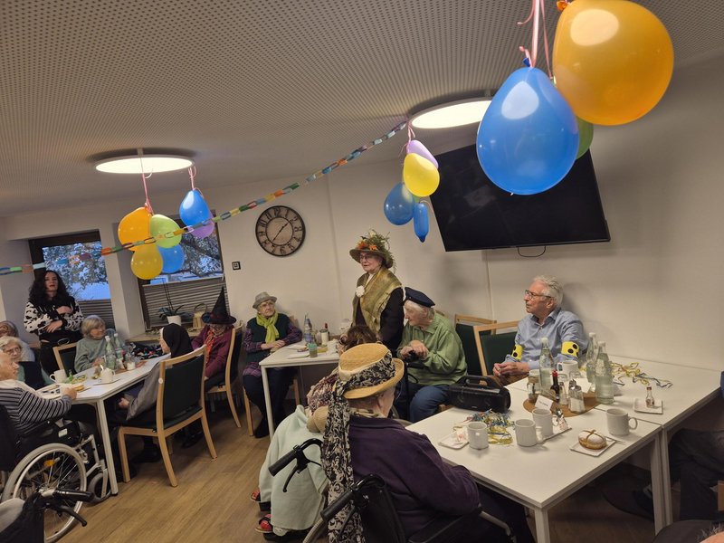 - Stimmgewaltiger Gesang: Was wäre Fasching ohne Musik? Von bekannten Schunkelliedern bis hin zu altbekannten Schlagern wurde kräftig mitgesungen. Die Textsicherheit unserer Bewohner/-innen war beeindruckend und sorgte für eine großartige Atmosphäre.