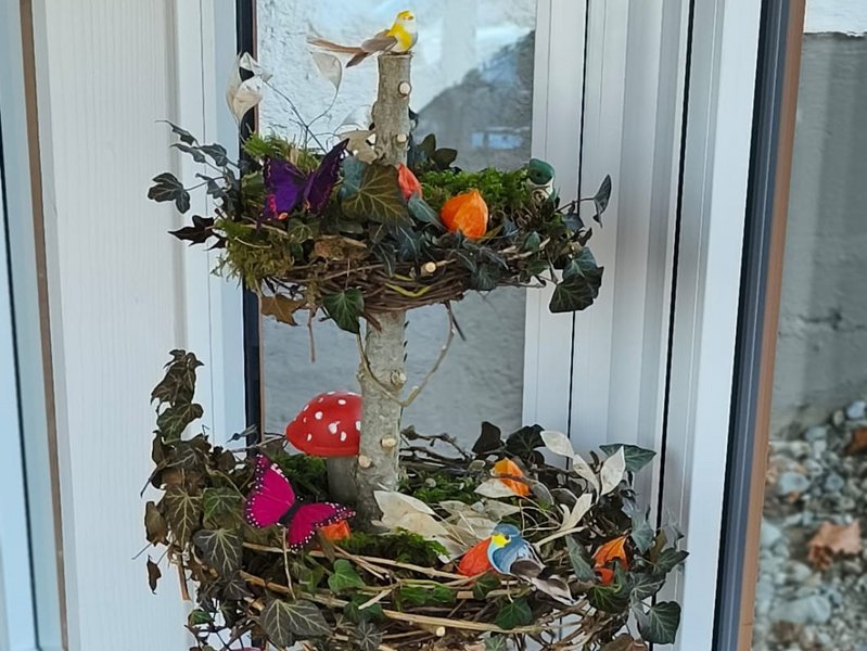 Monika Gruber, unsere Arbeitsanleiterin, hat uns dieses Foto ihres neuen Floristikkunstwerks zukommen lassen.