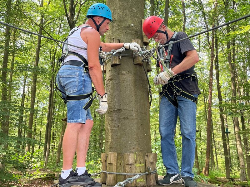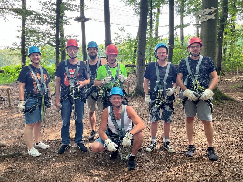 Die Freizeitgruppe des Haus Burgsinn wünschte sich einen Ausflug in den Kletterwald. Gesagt – Getan: Bei bestem Wetter, mit guter Laune und ausreichend Wegzehrung machten wir uns auf den Weg zum Kletterwald Steinau.