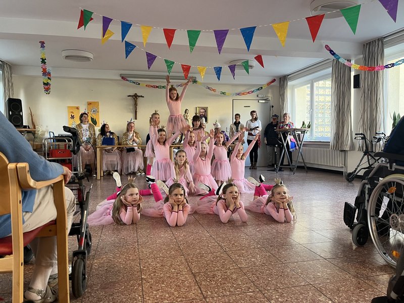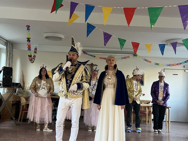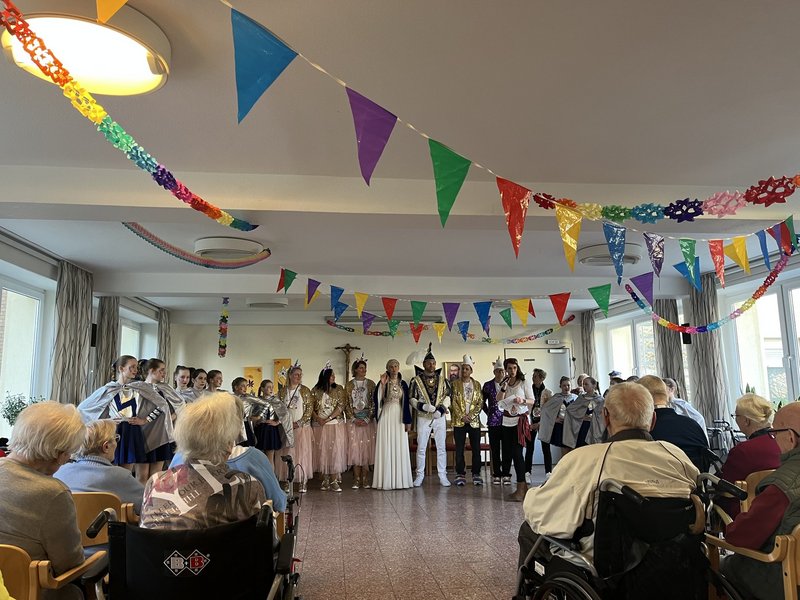 Mit großen Applaus wurde das Prinzenpaar Karin und Ruben in Begleitung einer Abordnung des Elferrats von den Bewohnerinnen und Bewohner, sowie Gästen des Hauses begrüßt. Nach der Begrüßung des Prinzenpaars führte Carina Hembrock durch das Programm. Ein Höhepunkt durfte natürlich nicht fehlen: Der Auftritt der Tanzgarde „Bambinis“ in ihren wunderschönen Prinzessinnen Kostümen. Die Begeisterung und der Applaus der Karnevalisten waren so gewaltig, dass der Karnevalsnachwuchs eine Zugabe geben musste.