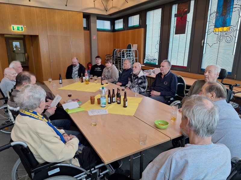 Einmal im Monat treffen sich die Männer unseres Hauses zum Männerstammtisch. In entspannter und gepflegter Atmosphäre genießen sie ein kühles Bier oder ein alkoholfreies Getränk sowie kleine Knabbereien. Der Männerstammtisch ist ein wichtiger Rahmen für Begegnung und persönliche Gespräche. Hier wird erzählt, diskutiert und viel gelacht. Persönliche Anekdoten aus dem Alltag sorgen regelmäßig für heiteres Lachen und stärken das Miteinander in der Gruppe.