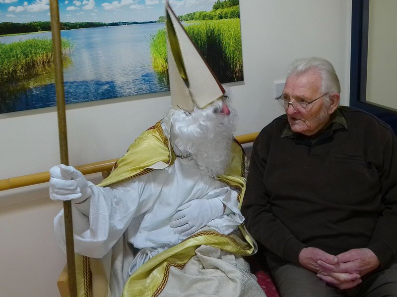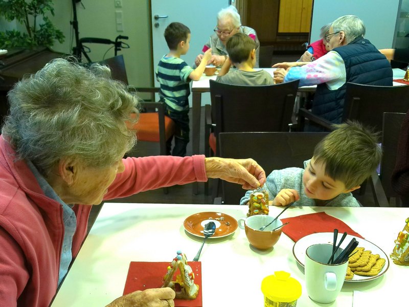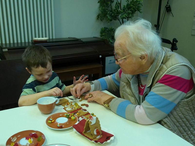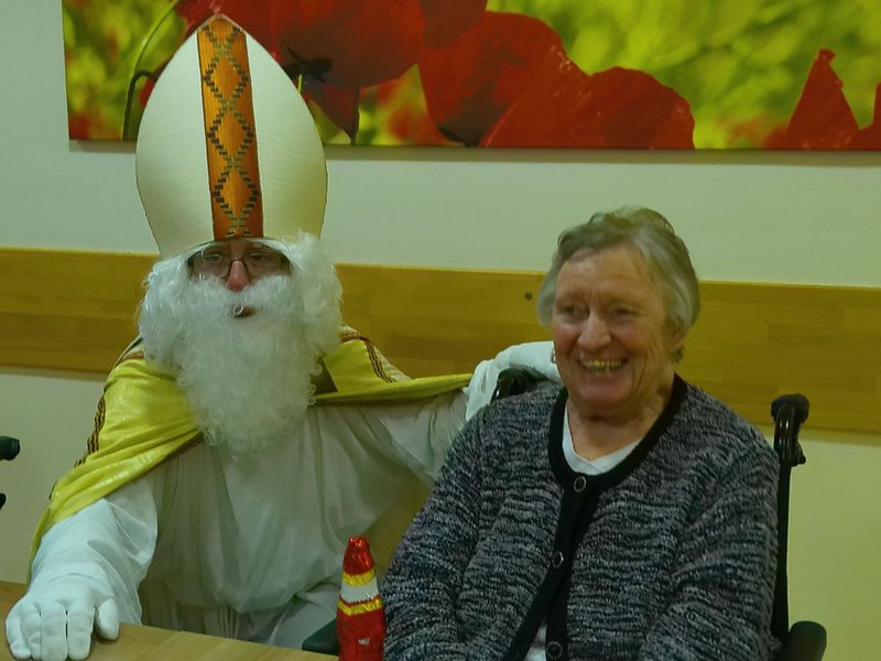 Im Dezember bereiten wir uns traditionell auf das Weihnachtsfest vor: Der Nikolaus besuchte unsere Bewohnerinnen und Bewohner und überreichte ihnen eine süße Überraschung. Er freute sich über strahlende Gesichter, Gedichte, die unsere Bewohnerinnen und Bewohner ihm vortrugen und die fröhliche Stimmung im Haus. Mit den Kindern der KITA gestalteten wir kleine Knusperhäuschen. Groß und Klein ließen ihrer Phantasie freien Lauf, so entstanden zur Freude aller bunte Kunstwerke. An den Dezemberwochenenden stimmten wir uns auch musikalisch auf die Weihnachtszeit ein. Ein klassisches Harfenkonzert sowie ein Mitsing-Konzert mit einem musikalischen Trio aus Menden durften wir bereits erleben. Es folgt noch der Kirchenchor St. Josef aus Lendringsen mit einem Konzert in unserer Aula - am Wochenende vor Weihnachten. Der Heilige Abend wird sehr familiär und mit einem festlichen Gottesdienst sowie anschließender Bescherung stattfinden und in besinnlicher Gemeinschaft gefeiert.
