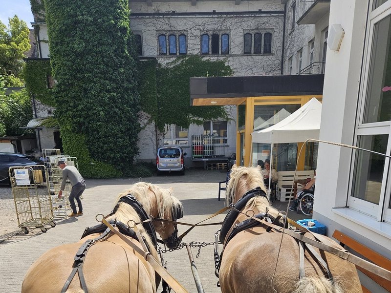 Ein absolutes Highlight haben die Bewohner/-innen des Katharinenstift Freiburg und die Kinder des ansässigen Kindergartens erlebt: Eine Kutschfahrt durch den Stadtteil, der dank eines Schwarzwälder Kutschers möglich war.