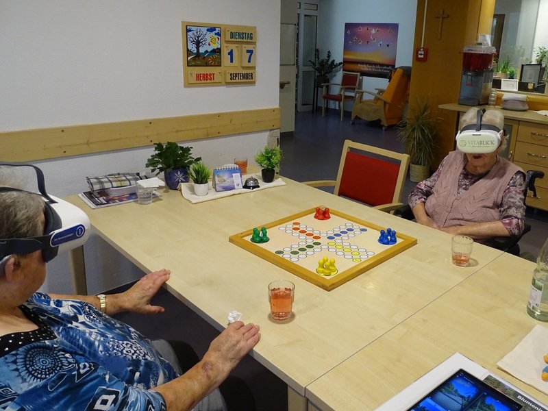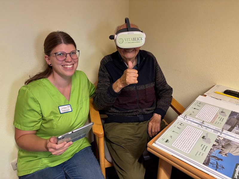 „Einmal rund um die Welt“ – so lautet derzeit das Motto im St. Elisabeth. Mithilfe einer modernen Filmbrille haben unsere Bewohner/-innen die Möglichkeit, sich aus einer vielfältigen Auswahl an Reisezielen und Erlebnissen ihre ganz persönliche Reise zusammenzustellen. Ob eine abenteuerliche Safari in der afrikanischen Savanne oder ein entspannter Stadtbummel durch vertraute Städte wie Bern, Stuttgart oder Augsburg – jede/-r wählt das Reiseziel, das am besten zur eigenen Lebensgeschichte oder aktuellen Stimmung passt. Diese virtuellen Reisen bieten nicht nur spannende Eindrücke, sondern auch eine besondere Form des Erinnerns: Viele unserer Bewohnenden nutzen die Gelegenheit, vertraute Orte aus ihrer Vergangenheit noch einmal zu besuchen und in schönen Erinnerungen zu schwelgen. Es war bewegend und schön zu erleben, mit wie viel Freude, Staunen und Emotion sie diese digitalen Ausflüge genossen haben – ein echtes Highlight im Alltag.