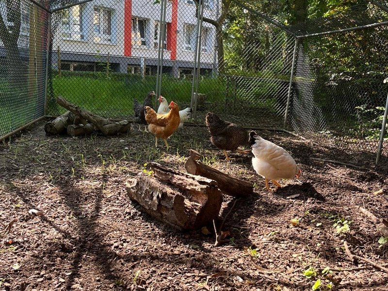 Herzlich willkommen: Unsere neuen Hühner sind am 03.05.2024 bei uns eingezogen und fühlen sich sehr wohl.