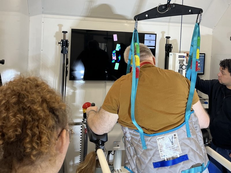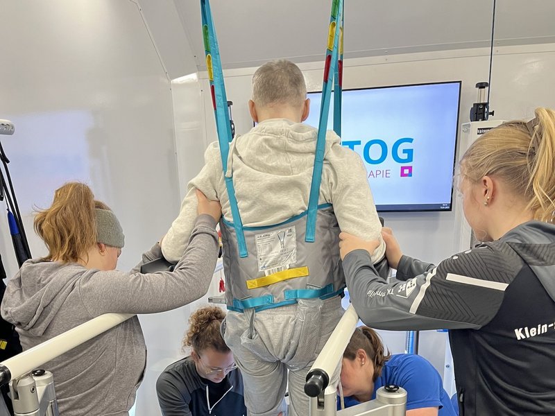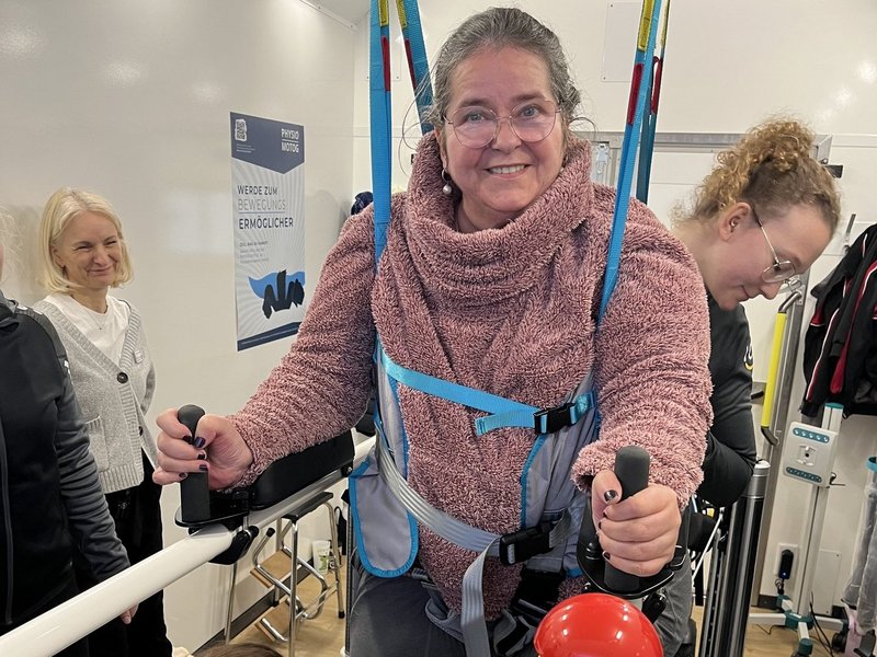 Das St. Josefshaus Rheine bekam Besuch von der Physiotherapie Motog. Was ist besonders an einem Besuch der Physiotherapie? Claudia Motog und ihr Lebensgefährte haben einen Anhänger konzipiert, in dem ein Laufband enthalten ist. Dieses Laufband ist ein medizinisches Laufband. Das Besondere ist, dass mit diesem Laufband nahezu jeder Mensch wieder laufen kann. Es gibt eine spezielle Vorrichtung, um die Menschen mit Einschränkungen zu sichern und gleichzeitig mit Hilfe wieder Laufbewegungen durchführen zu können - auch ggf. ohne Hilfe. Der Anhänger ist EU-weit der erste dieser Art. Zudem kann durch modernste Technik ein Laufprofil und eine Laufanalyse erstellt werden, um so das Laufen wieder zu trainieren oder individuelle Hilfsmittel anpassen zu können.
