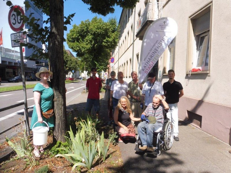 Im August haben engagierte Bewohner/-innen und Menschen aus dem Stadtteil gemeinsam die Pflege der acht Lindenbaumscheiben vor dem Katharinenstift übernommen. Bereits seit zwei Jahren engagiert sich das Stadtteilprojekt im Rahmen von „Freiburg packt an“ – einer Initiative des Garten- und Tiefbauamts der Stadt Freiburg – und hat eine Patenschaft für diese Baumscheiben übernommen.