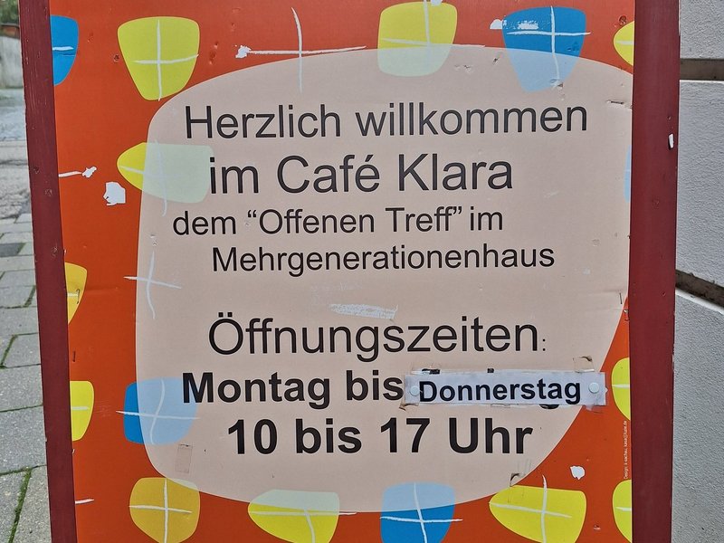 Sarah Walther-Young bietet nun auch regelmäßig stattfindende Sprechstunden im Café Klara, welches sich im "Mehr Generationen Haus" in Regensburg befindet.