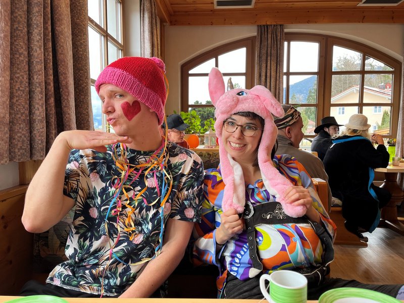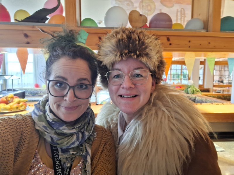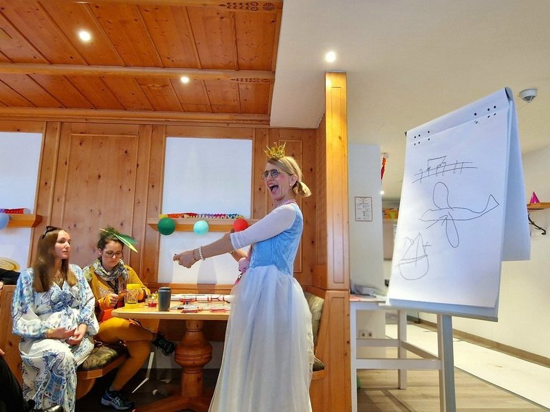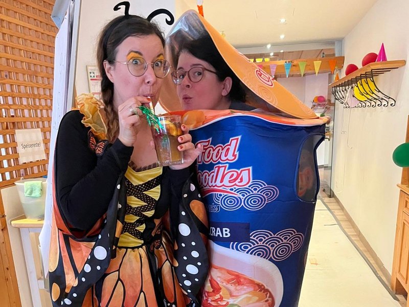 Die Mitarbeiter/-innen kamen alle bunt-crazy verkleidet: als schönste Prinzessinnen, als Luigi, als Nudlsuppn (Ramen), als Personenschützerin, als A-Promi, als Echse/Dino, als Ritter, als Papagei, als Oktopus, als Schah, als Biene, als Hund ... und, und, und ...