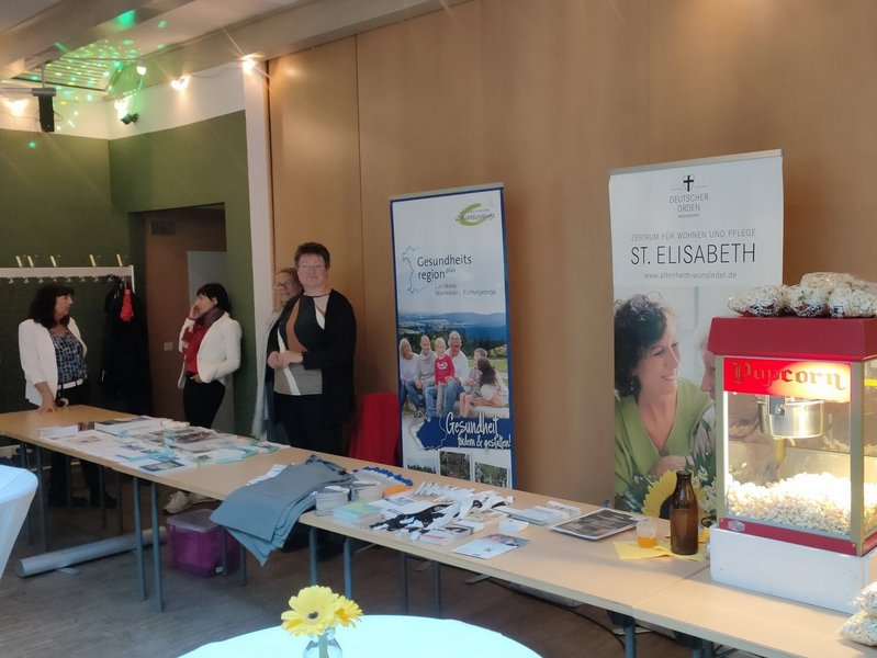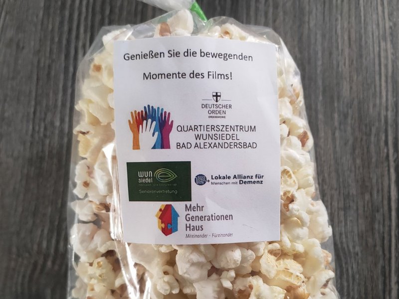 Die Quartiersmanagerin vom Quartierszentrum Wunsiedel und Bad Alexandersbad, Andrea Reisinger, verteilte vor dem Film frisch zubereitetes Popcorn an die Besucherinnen und Besucher und erhielt dadurch die Möglichkeit zur Interaktion: Verschiedene Small Talks und Fragen der Teilnehmer/-innen beispielsweise zum Aufgabengebiet der Quartiersmanagerin aber auch zum Thema Demenz wurden beantwortet.