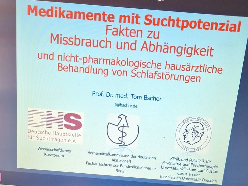 Wir hatten die Gelegenheit, an einer bedeutsamen Online-Fortbildung zum Thema Medikamente und Medikamentenabhängigkeit teilzunehmen - eine Veranstaltung der DHS (Deutsche Hauptstelle für Suchtfragen e.V.), der Arzneimittelkommission und der TU Dresden - mit so namhaften Referenten wie Dr. Raimer Thomasius und Dr. med. Darius Chahmoradi Tabatabai.