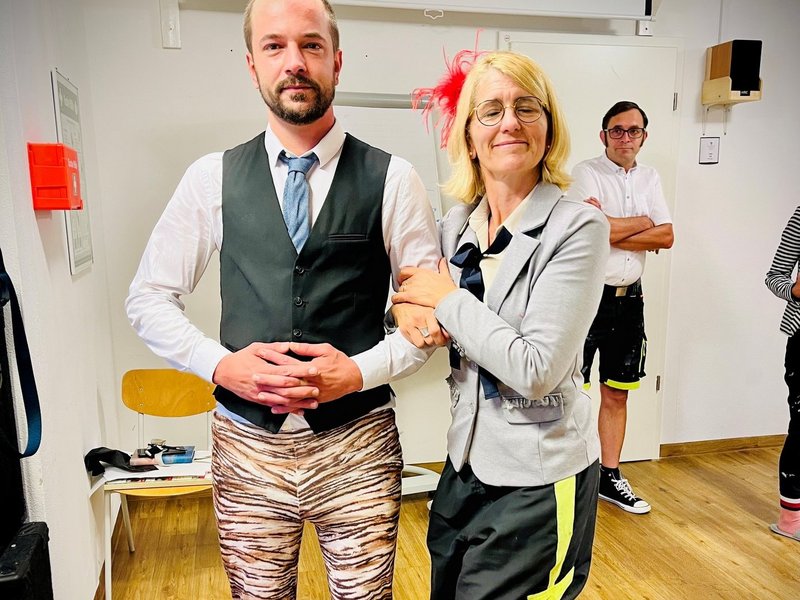 Anbei ein paar Eindrücke von unserer gemeinschaftlichen Gaudi-Aktion "oben hui, unten pfui" mit den Bewohnenden und Mitarbeitenden in unserem Haus. Der Einsatz von Ironie, Provokation, das "Auf-die-Spitze-Treiben", Tabuisierungen offenbaren/durchbrechen, der Umgang mit Scham, das Herausfordern von wahren Reaktionen (Gefühle, Verhalten) sind schon auch Methoden und Techniken und Teil unserers Konzeptes.