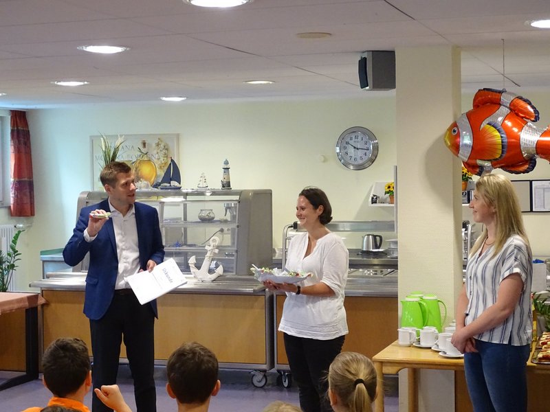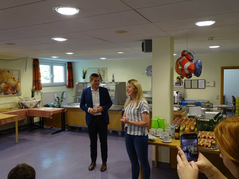 Zum Abschluss bekamen die Schüler und Schülerinnen vom Bürgermeister Nicolas Lahovnik und der Einrichtungsleitung Katharina Fürst eine Urkunde und eine kleine Aufmerksamkeit in der Cafeteria im St. Elisabeth überreicht. Anschließend gab es leckere Getränke und Kuchen und die Schüler/-innen haben sich offen und herzlich mit den Bewohner/-innen ausgetauscht. Wir hoffen auf eine Fortführung des Projekts nächstes Schuljahr.