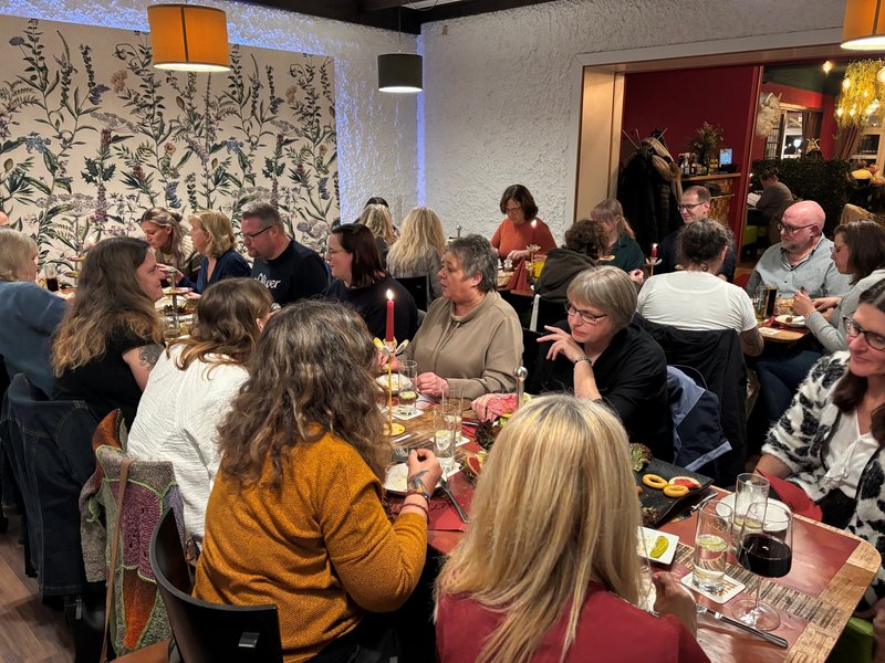 Unsere Mitarbeitervertretung (MAV) hatte zu einem gemeinsamen Mitarbeiteressen eingeladen – 38 Kolleginnen und Kollegen folgten dieser Einladung gern. Im schönen Restaurat Hayatt Nettetal Galgenvenn erwartete uns ein Abend in entspannter Atmosphäre. Das Treffen sollte Gelegenheit bieten, miteinander ins Gespräch zu kommen, neue Kontakte zu knüpfen und den Teamgeist zu stärken. Bei einem köstlichen Essen mit türkischen Spezialitäten wurde viel gelacht, erzählt und gefeiert. Die gute Stimmung hielt bis in den späten Abend hinein – und schnell war klar: Das war bestimmt nicht das letzte Mal!