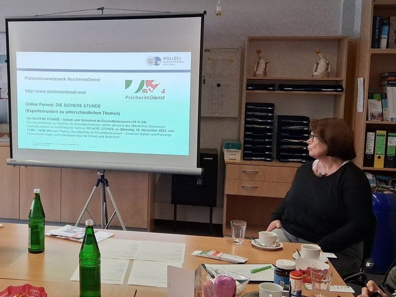 Anfang April begrüßten wir die Kriminalhauptkommissarin Stefanie Bodden-Bergau der Abteilung Kriminalprävention zu einem intensiven Austausch mit unseren Mitarbeitenden. Im Fokus standen Gewaltprävention in der Pflege, Deeskalationsstrategien sowie konkrete Handlungsmöglichkeiten für herausfordernde Situationen im Berufsalltag. Die Teilnehmenden erhielten wertvolle Impulse, wie sie Konflikte frühzeitig erkennen, professionell reagieren und sich selbst sowie Kolleginnen und Kollegen besser schützen können. Das besondere Highlight der Fortbildung: praxisnahe Beispiele aus dem Pflegealltag und direkt umsetzbare Tipps für mehr Sicherheit im Umgang mit schwierigen Situationen.