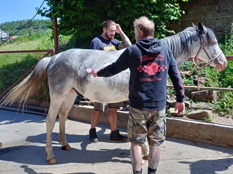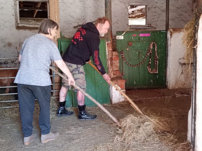 Mit viel Vorfreude machten sich die Bewohnerinnen und Bewohner des Hauses Hirtenhof auf den Weg zu ihrem Lieblingsreiterhof. Unter Anleitung der Hofbesitzer halfen alle tatkräftig mit: Pferde füttern, putzen, kleine Arbeiten rund um den Stall – alles wurde mit Begeisterung und großem Engagement übernommen.