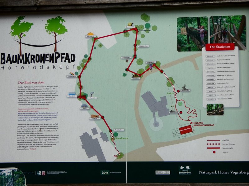 Diese Wanderung in den Baumkronen führt nur über Hängebrücken durch den Wald. Von der dortigen Aussichtsplattform hat man bei gutem Wetter ein Blick bis auf die Skyline Frankfurts.