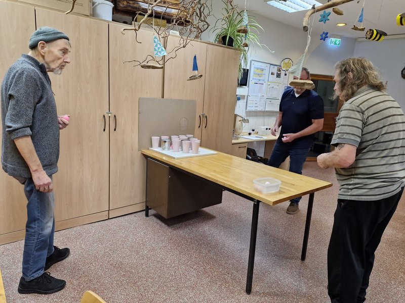 An den Stationen wurden Punkte vergeben und eine Siegergruppe ermittelt. Nach dem Mittagessen, gab es die Möglichkeit, an einem Tischfußballtunier teilzunehmen bei dem sich die Bewohner/-innen gegen Mitarbeiter/-innen messen konnten.