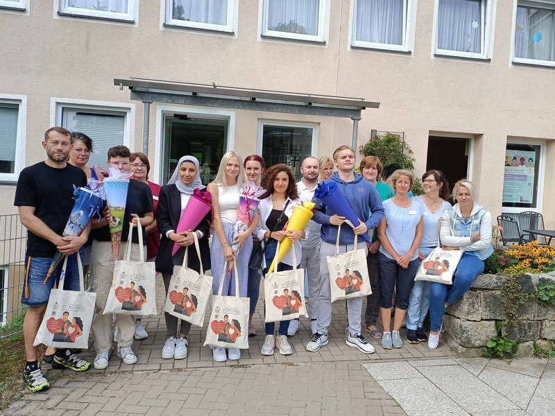 Einen ereignisreichen Tag erlebten die neuen Auszubildenden am ersten Tag ihrer Ausbildung. Es sind aktuell 13 Auszubildende in der Generalistik und 3 Auszubildende in der Pflegefachhelferausbildung. Mit einem gemeinsamen Frühstück und einem Rundgang durch die Einrichtung sowie umfangreichen Unterweisungen wurde sie durch die Einrichtungsleitung, die Pflegedienstleitung und die Wohnbereichsleitungen begrüßt. Alle Azubis erhielten zum „Schulanfang“ eine mit Süßigkeiten gefüllte Schultüte.