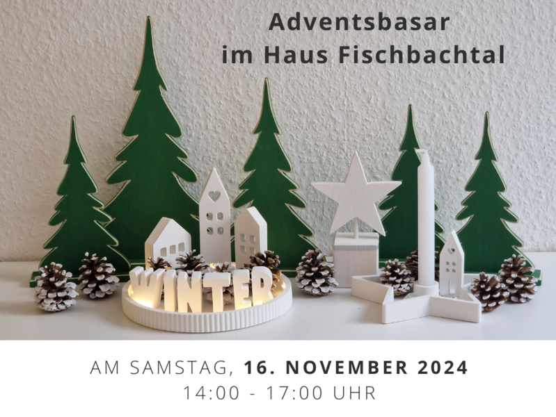 Wir freuen uns sehr auf Ihren Besuch beim diesjährigen Adventsbasar. Lernen Sie das Haus Fischbachtal kennen und erfreuen Sie sich an unseren liebevoll gestalteten Artikeln, die in unserem Hause entstanden sind.