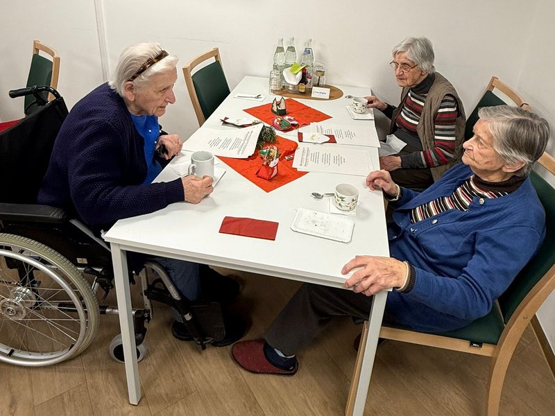 Natürlich kam der Nikolaus nicht mit leeren Händen. Aus seinem großen Sack verteilte er liebevoll verpackte Nikolausgeschenke an jede/-n Bewohner/-in. Die Freude über die kleine Aufmerksamkeit und die persönliche Zuwendung war in vielen Gesichtern deutlich zu lesen. Nach dem offiziellen Teil ging der Nachmittag in ein gemütliches Beisammensein über. Bei hausgemachtem Punsch, Kaffee und köstlichem Christstollen saßen Bewohnende, Mitarbeitende und Angehörige noch lange zusammen. Es wurden alte Adventslieder gesungen, Geschichten aus früheren Zeiten erzählt und gemeinsam gelacht.