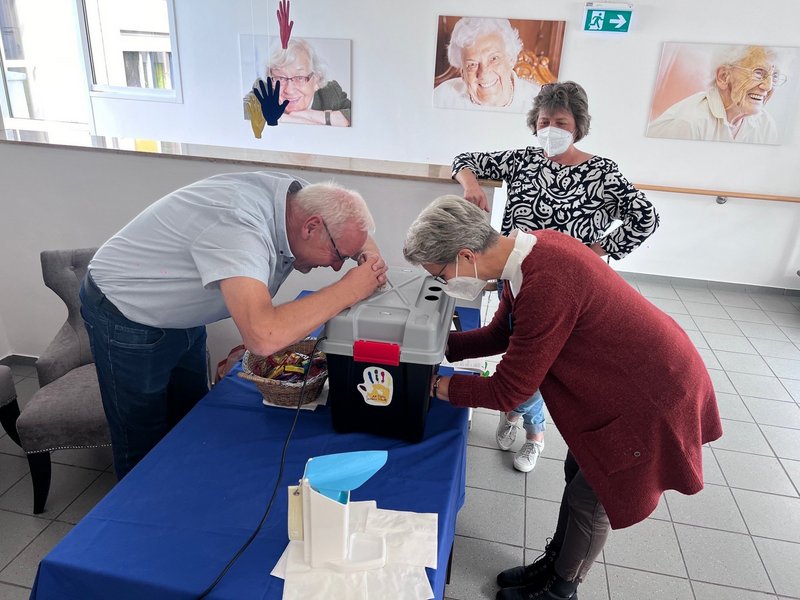 Hygienebeauftragter Rainer Belz hat die Mitarbeiterinnen und Mitarbeiter der Einrichtung zum Tag der Händehygiene mit einer Black Box überrascht.