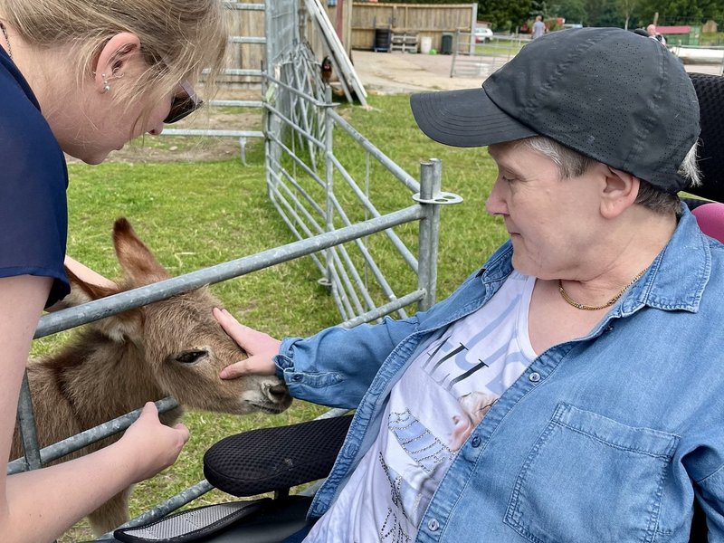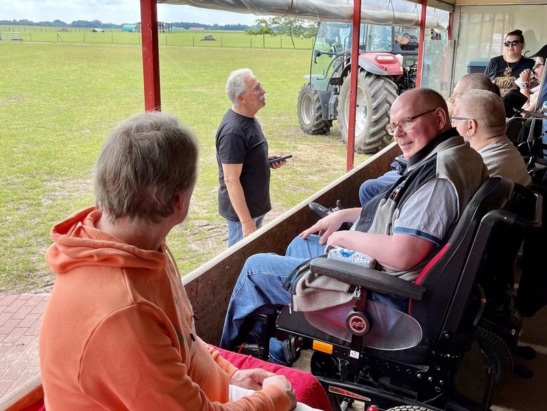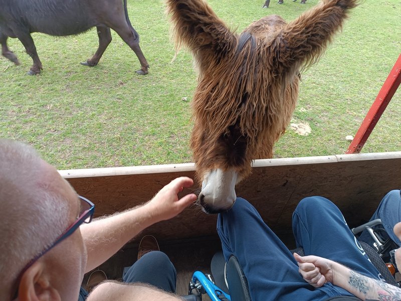 Am dritten Tag konnte die atemberaubende Landschaft der Lüneburger Heide bestaunt werden: Bei gutem Wetter ging es für die Bewohner/-innen zu einem Baumwipfelpfad. Über einen rollstuhlgerechten Weg über den Bäumen gelangten sie an die Aussichtsplattform, die sogar den Blick bis zum Hamburger Hafen bot. Im nahe gelegenen Wildpark gab es dann Tiger und Waschbären zu sehen. Nach einer kleinen Stärkung ging es zurück in das Heidehotel. Nach einer kleinen Erholungspause schauten sich am Abend alle gemeinsam das Deutschlandspiel an.