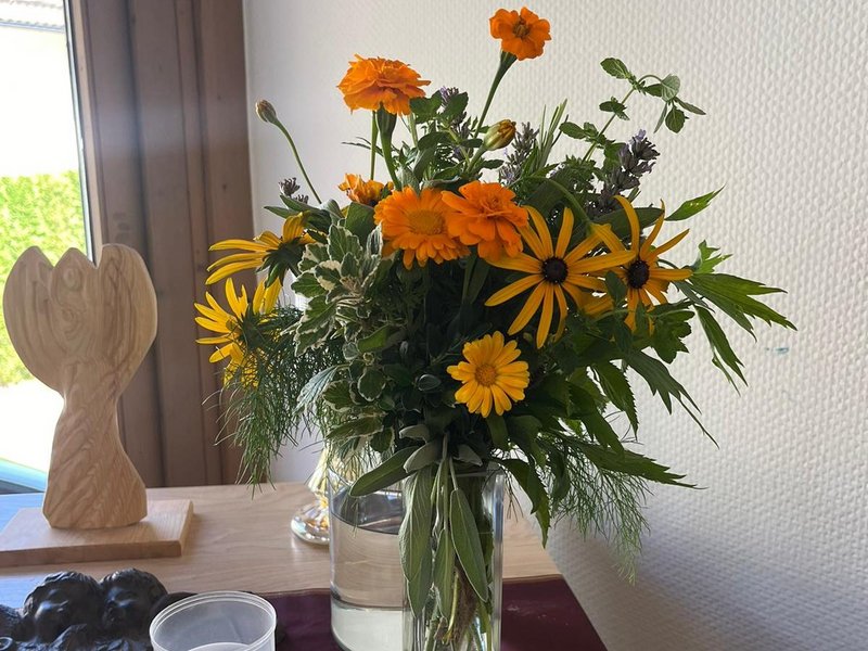 Die Würzbüschel zieren unsere kleine Gedenkecke und können mit zum Gottesdienst in der Kirche zur Weihhung mitgenommen werden.