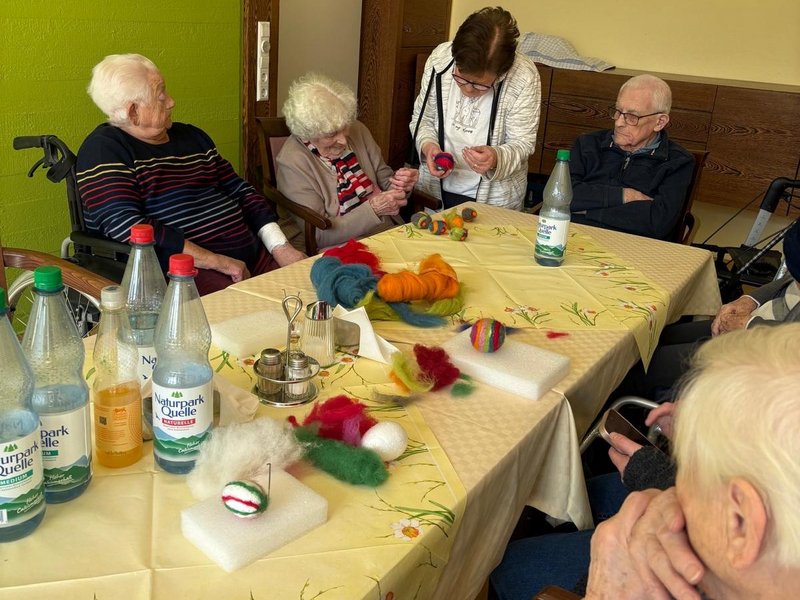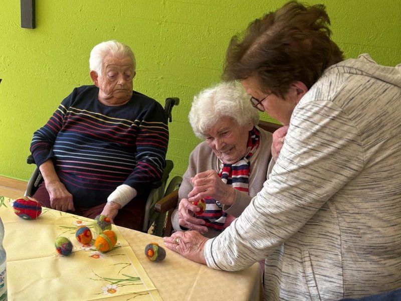 Ostern kann kommen: Im Haus St. Hildegard wurde in den Tagen vor dem Fest mit viel Begeisterung gefilzt, gestaltet und vorbereitet. So groß war die Freude am gemeinsamen Werkeln, dass die Aktion kurzerhand auf zwei Tage ausgeweitet wurde. Bewohnerinnen und Bewohner fertigten mit viel Geduld und Kreativität kleine und große Ostereier aus Filz – jedes ein liebevoll gestaltetes Unikat. Bei der Organisation wurde Quartiersmanagerin Christiane Schenk aufgrund des großen Interesses vom Betreuungsteam des Hauses. Das Ergebnis: eine bunte Sammlung handgemachter Kunstwerke, die perfekt für die Ostereiersuche im Park am Ostersonntag vorbereitet sind.