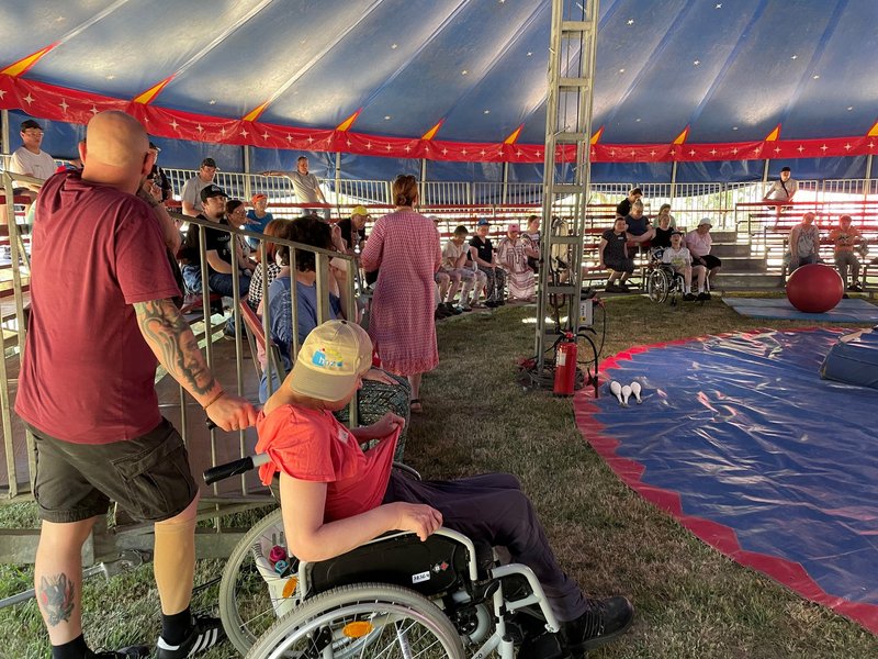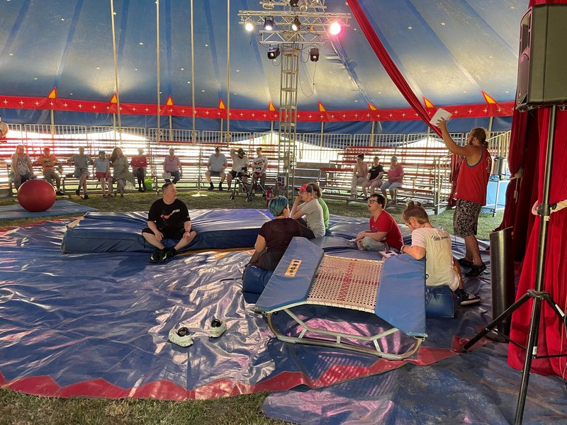 Gegen Mittag öffneten sich schließlich die Zeltplanen, und das Zirkusteam präsentierte eine kurze Show – ein mitreißender Einblick in das, was die Teilnehmenden in den kommenden Tagen selbst erleben und gestalten würden. Im Anschluss wurden die Teilnehmenden – orientiert an ihren eigenen Wünschen und Fähigkeiten – in verschiedene Gruppen eingeteilt.
