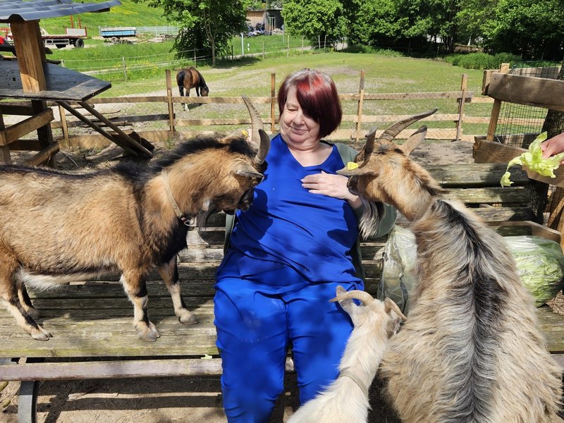 Der Tagesablauf beginnt mit der Hinfahrt (Auto und ÖPNV), Bewohner/-innen, die noch mobil sind, werden durch eine tolle ehrenamtliche Mitarbeiterin begleitet. Senior/-innen im Rollstuhl oder Rolli können im Auto des Katharinenstift mitfahren. Nach der Ankunft werden die Tiere gefüttert, Spaziergänge am Bachlauf im Schwarzwald unternommen, es wird gemalt uvm..