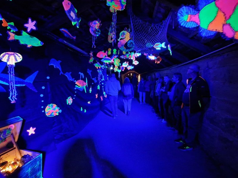 Verschiedenste Einfälle zum Thema Fische und Unterwasserwelt haben Abwechslung in unseren Therapiealltag gebracht: Mit selbstgesägten Holzrohlingen, schillernden Schuppen und Schwarzlichtfarbe entstand ein fröhlich-bunter Fischschwarm, der nicht nur uns begeisterte. Davon haben wir uns auch beim langen Abend überzeugt: Unser Ausflug führte uns durchs wunderbar illuminierte Gelände von Kronach leuchtet auf unserer Festung.