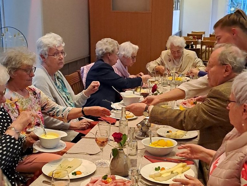 Die jährliche Maiandacht ist inzwischen Tradition: In der Kerzenkapelle am Kapellenplatz, die in diesem Jahr ihr 375-jähriges Jubiläum feiert, ging es zur Gnadenkapelle mit dem seit 1642 verehrten Marienbild. Anschließend gab es für die Bewohnerinnen und Bewohner sowie Mitarbeitenden das beliebte Spargelessen im „Goldenen Schwan“, in dem seit einigen Jahren eingekehrt wird.