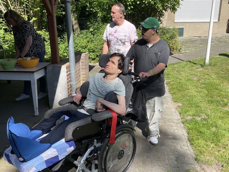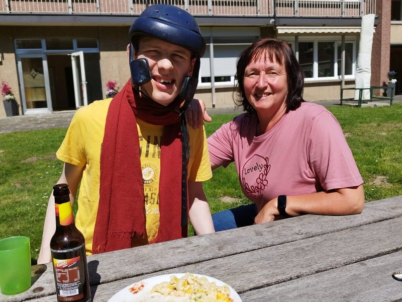 Am 1. Mai hatten wir eine richtig schöne Feier! Etwa 25 Bewohnerinnen und Bewohner waren dabei. Auch einige Betreuerinnen und Betreuer haben mitgefeiert. Das Wetter war super: viel Sonne, blauer Himmel und sommerlich warm.