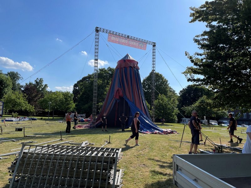 Mit großer Freude und Teamgeist starteten wir in unsere Zirkuswoche! Am Sonntag wurde das Zirkuszelt aufgebaut – eine echte Gemeinschaftsaktion bei sommerlicher Hitze. 32 engagierte Menschen, darunter Mitarbeitende und ehrenamtliche Helfende, haben mit angepackt und das Zelt in fünf intensiven Stunden aufgestellt.