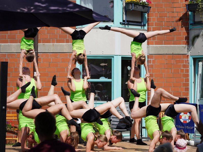 Das Förde Blasorchester setzte musikalisch eindrucksvoll fort, während die Tombola mit über 1000 Preisen bereits ausverkauft war. Bei Kaffee und Kuchen kamen dann die Ponys vom Hof Stoltenberg für Rundritte mit den Kindern. Den festlichen Abschluss gestalteten die Showakrobaten des TuS Holtenau und der Shanty-Chor des Kieler Förde e.V. mit herausragenden Darbietungen.