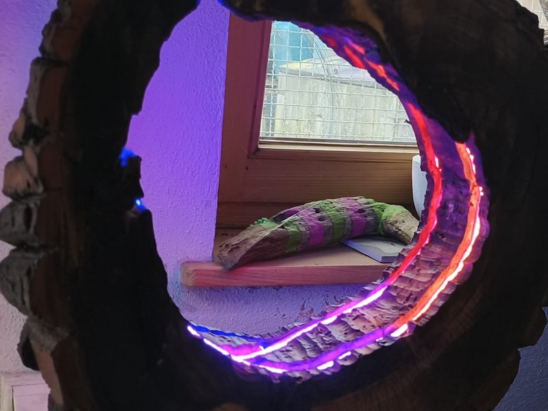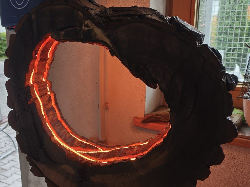 Unser Bewohner, Herr Ka., hat dieses kunstvoll illuminierte Holzobjekt im Rahmen unserer tagesstrukturierenden Arbeitsangebote mit viel Sorgfalt und Kreativität gestaltet.