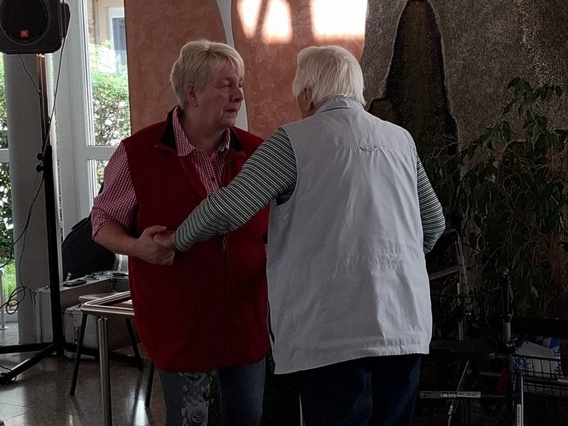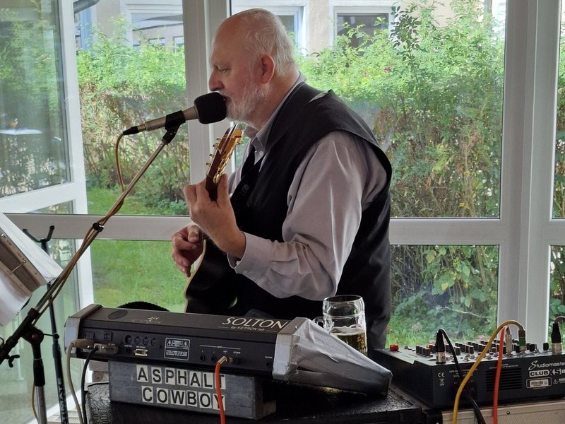 Herr Assmann, unser Asphalt–Cowboy heizte den Heimbewohner/-innen mit Schlager- und Schunkelliedern kräftig ein.